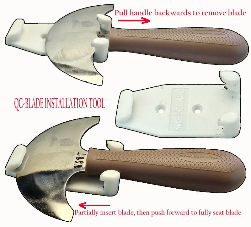 011525 QC Round knife from Horse Shoe Brand, is a new approach to the leather working tool market. Everything is replaceable, the handle, each of the 3 blade styles we initially offer here. YES, the answer is yes that HSBT is right now working toward a small bench top sharpening fixture- but that will be after the New Year. In the meantime, each knife blade can be sharpened like any other round knife on your bench. Damage a blade, not a problem, as the user can simply slide the old blade out, and slip a new sharp blade in place and your back to work. Use the 011625 blade puller to safely add or remove your blades.